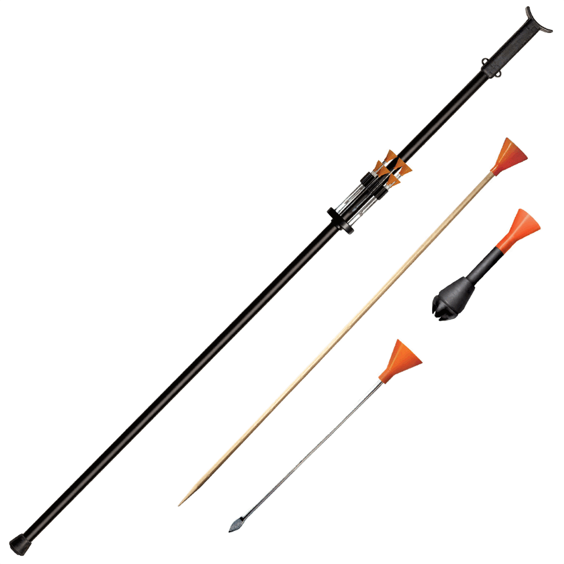 Cold Steels Big Bore® Blasrohre verfügen über große .625 Kaliber Magnum Geschützrohre und sind in der Lage, schwerere Pfeileschneller zu verschießen als manche andere Modelle auf dem Markt! Sie haben eine effektive Reichweite von ca. 18 Metern und mitihnen kann ein erfahrener Schütze mit entsprechendem Training einen 5 cm Kreis aus unglaublicher Entfernung treffen und schwerePfeile schießen, die eine ca. 1,3 cm dicke Sperrholzplatte durchdringen können.