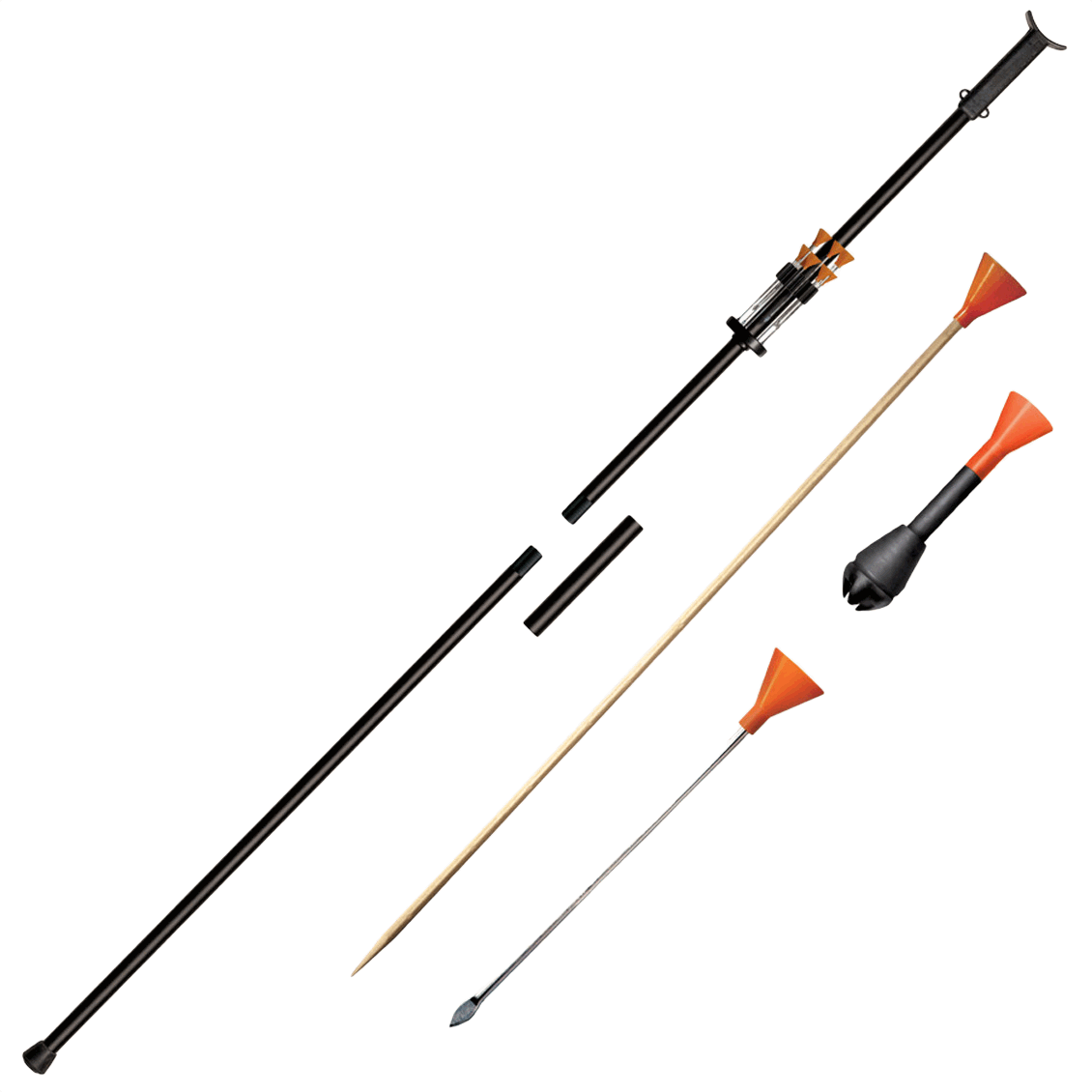 Cold Steels Big Bore® Blasrohre verfügen über große .625 Kaliber Magnum Geschützrohre und sind in der Lage, schwerere Pfeileschneller zu verschießen als manche andere Modelle auf dem Markt! Sie haben eine effektive Reichweite von ca. 18 Metern und mitihnen kann ein erfahrener Schütze mit entsprechendem Training einen 5 cm Kreis aus unglaublicher Entfernung treffen und schwerePfeile schießen, die eine ca. 1,3 cm dicke Sperrholzplatte durchdringen können.