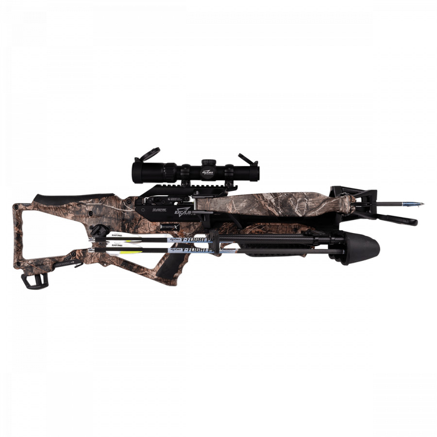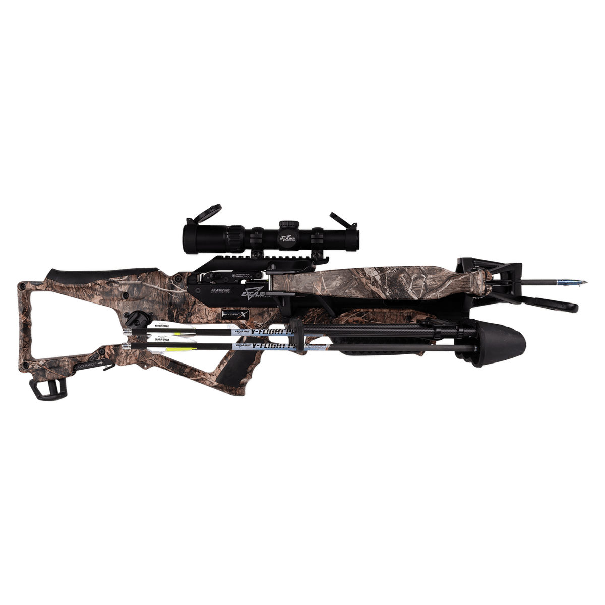 The Excalibur Hybrid X represents a leap in crossbow innovation—combining the reliability of a recurve with the speed of a compound to deliver true hybrid performance. Firing bolts up to 435 FPS, it features Excalibur’s Hybrid HO Recurve Compound System and InnerDrive Cams for compact power, reduced width, and maximum durability.