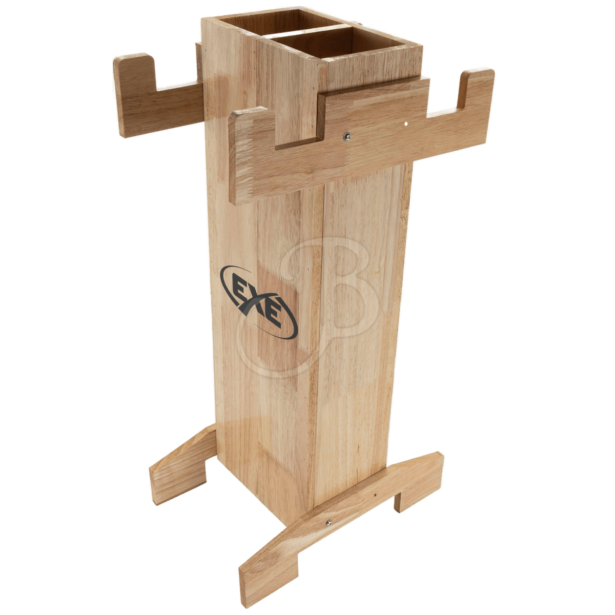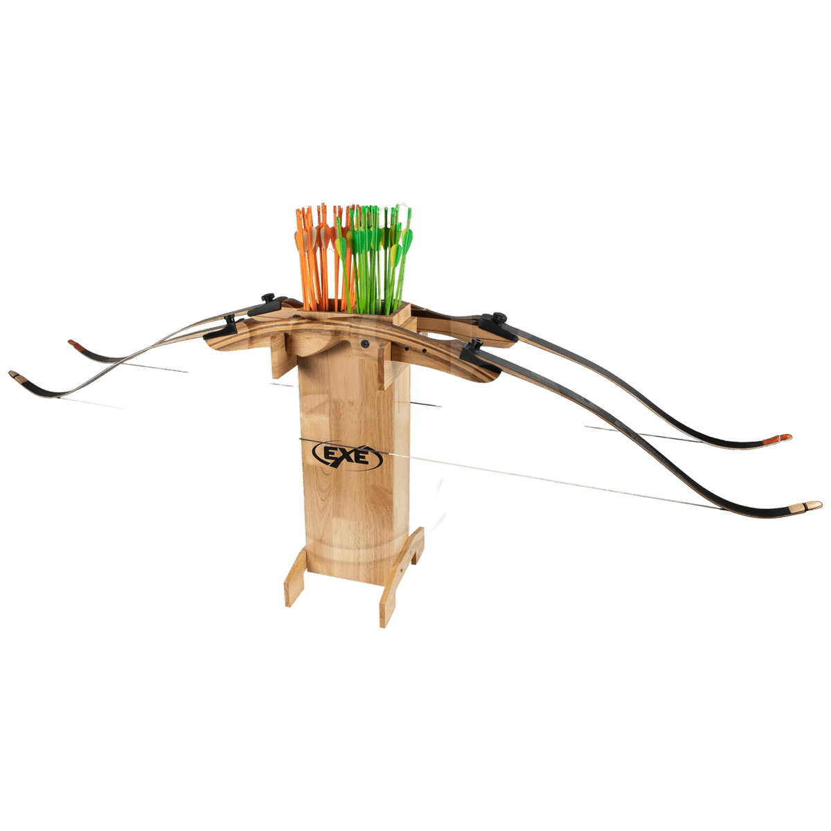 The EXE Bow and Arrow Stand offers a practical and elegant solution for storing bows and arrows at the shooting line. Made from sturdy wood, the stand keeps equipment organized and easily accessible during training or competition.
