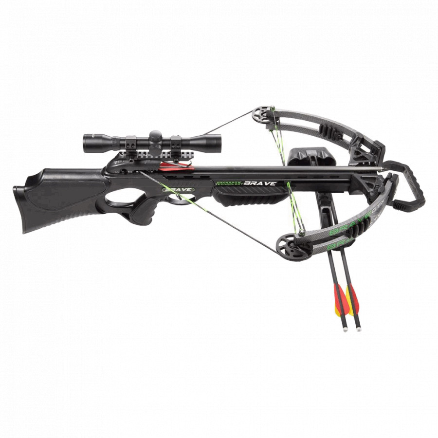 Offering some high-end features at budget pricing. This compound crossbow has a draw weight of 165lbs and is rated at 360fps. All of this is achieved with custom composite Gordon USA limbs. The Brave CTX 360 is safe and comfortable to handle due to the finger safety below the rail, soft touch pistol and fore grip. It has an inlaid aluminum black anodized rail, HD limb-dampeners and secure axle limb brackets making your life easier to press this crossbow.