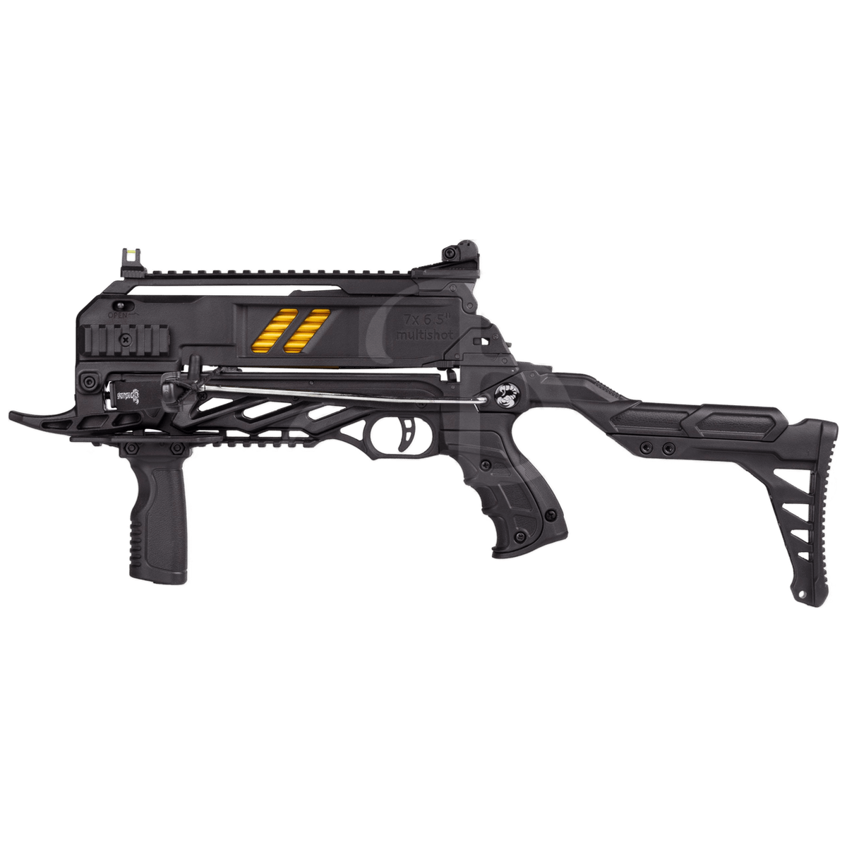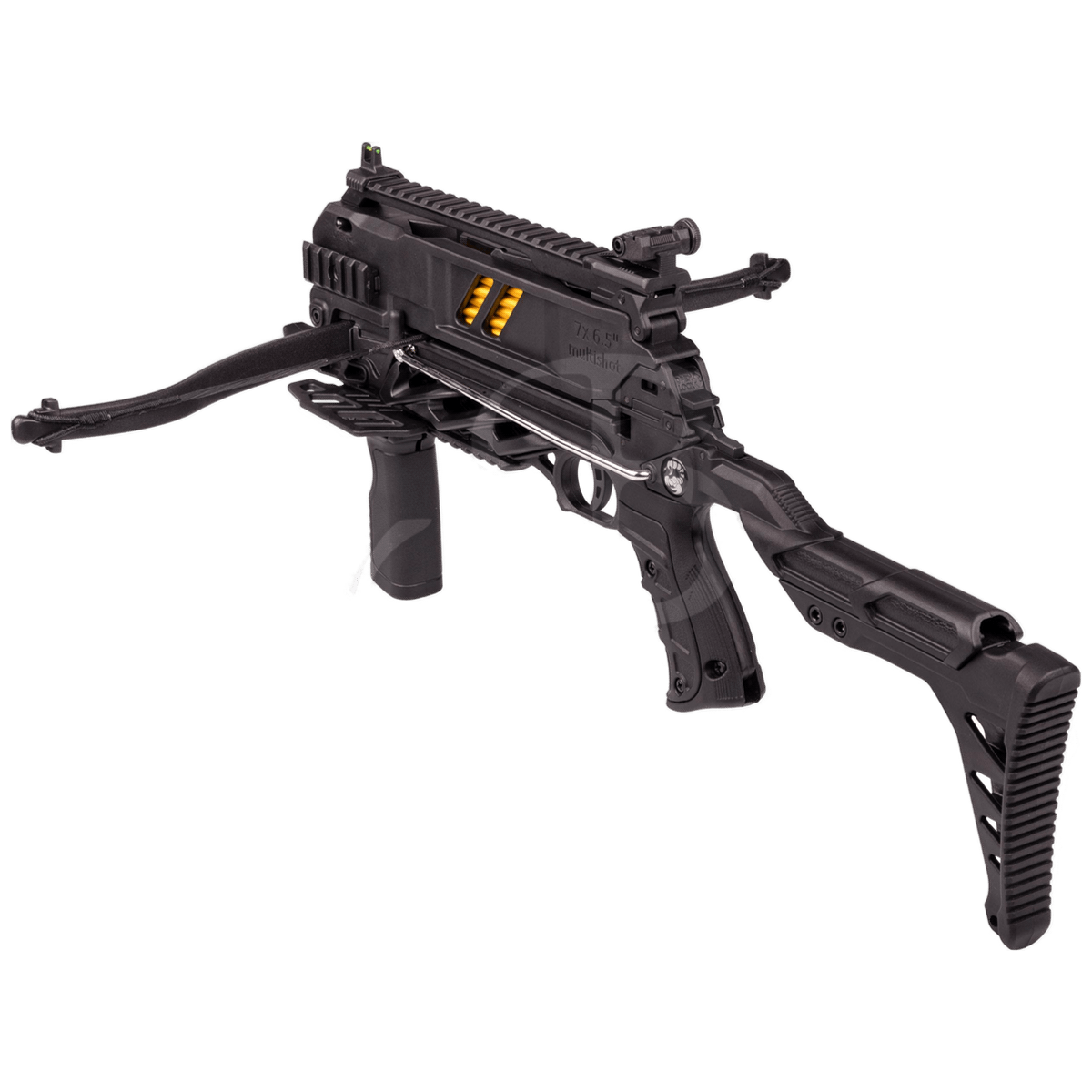 This pistol crossbow combines a simple, functional design with an integrated 7-shot magazine, allowing for quick follow-up shots and a high level of shooting fun.