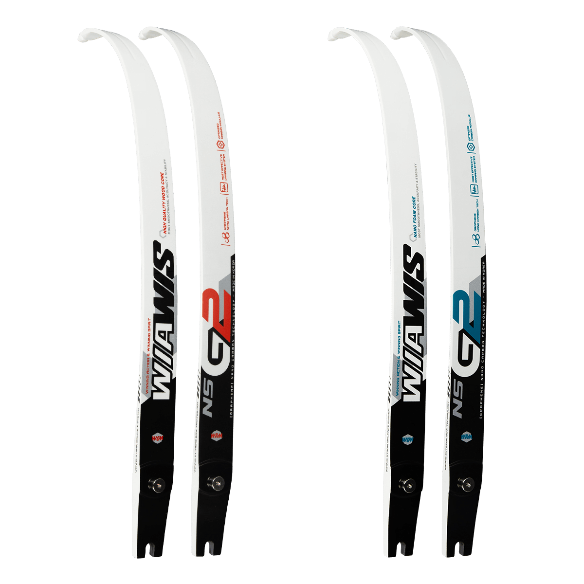The WIAWIS NS-G2 limbs combine high-modulus carbon construction with either a traditional wood core or advanced EHR foam core, delivering torsional stability, reduced vibration, and consistent recurve performance.